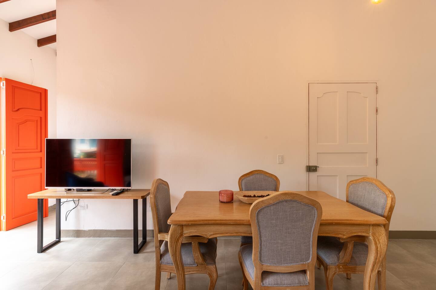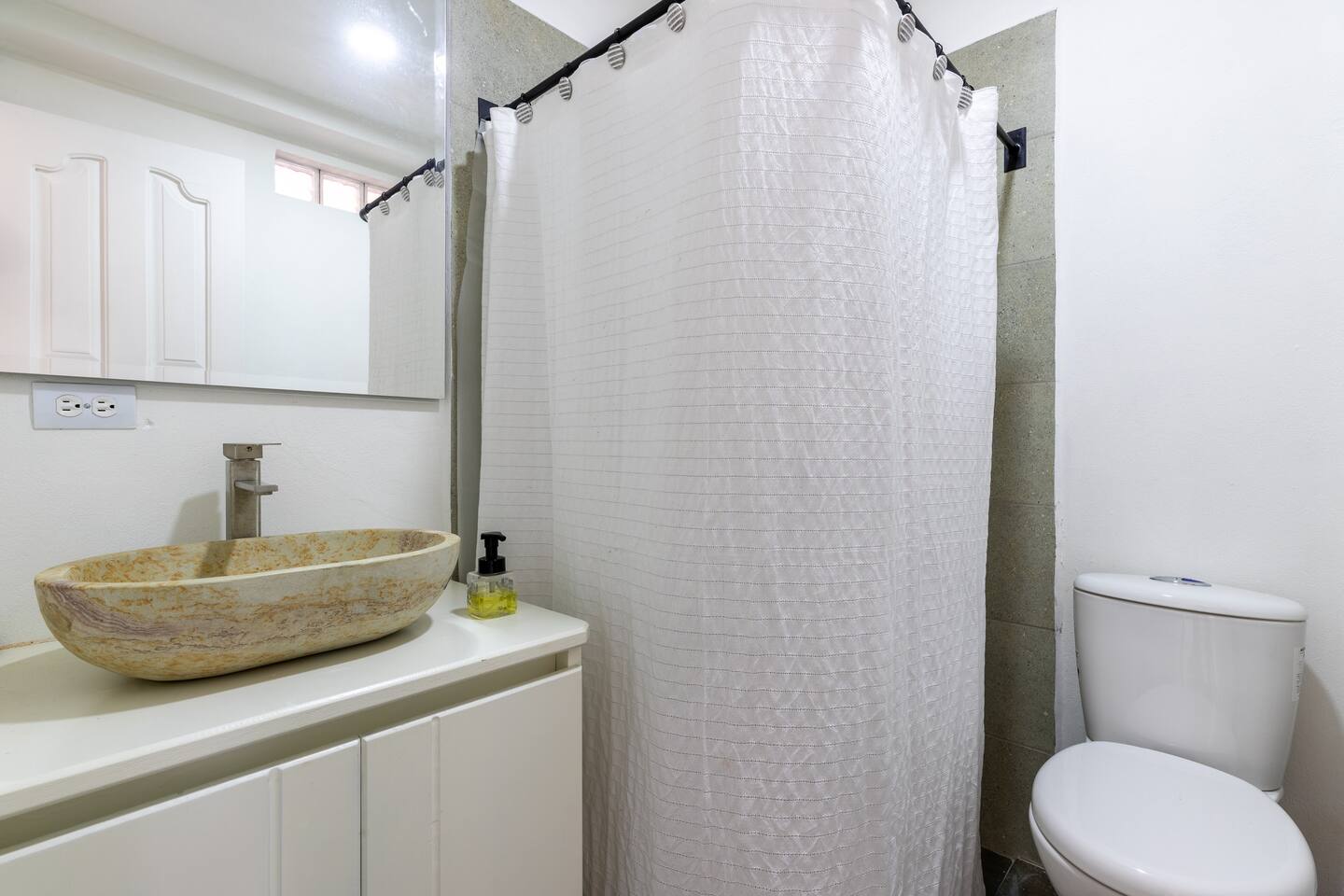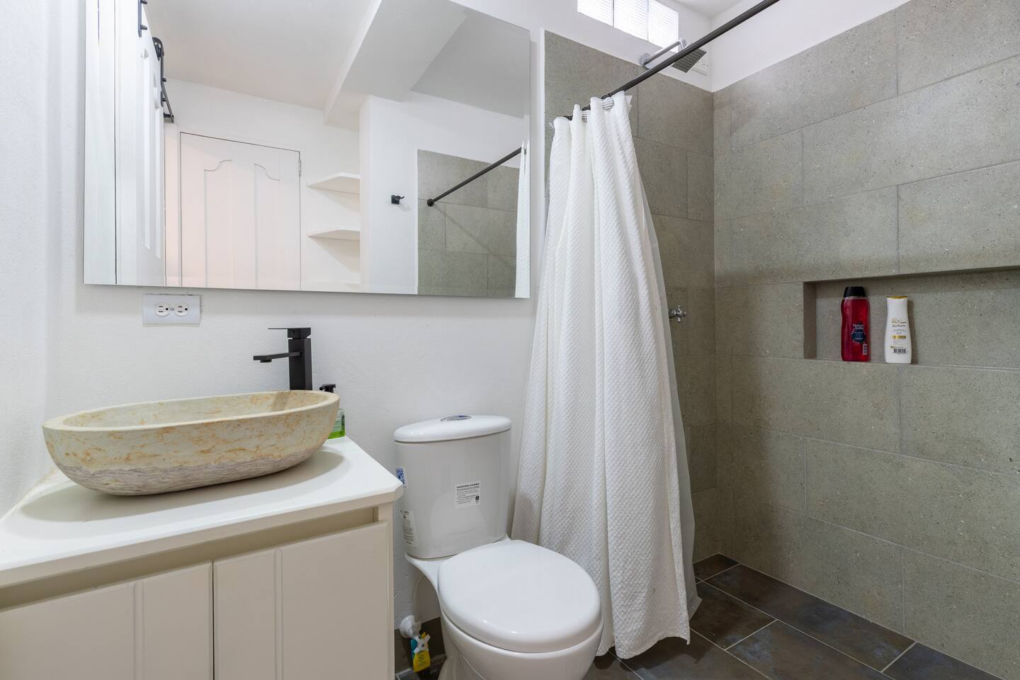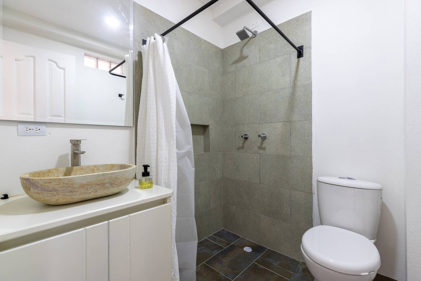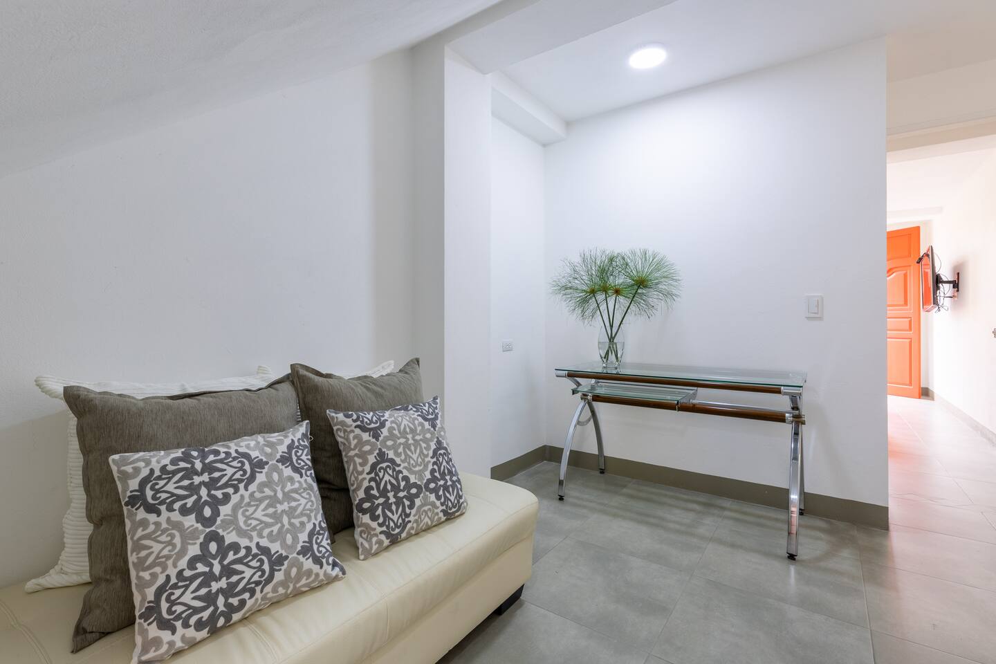 El espacio principal ofrece una generosa sala de estar, donde la luz natural se filtra a través de las amplias ventanas, destacando los elegantes muebles y los detalles decorativos cuidadosamente seleccionados. Los tonos neutros y los toques de colores cálidos crean una atmósfera acogedora y relajante, perfecta para descansar después de un día explorando las maravillas de Jericó. La cocina gourmet es un sueño hecho realidad para los amantes de la cocina, equipada con electrodomésticos de última generación y una isla central espaciosa que invita a la socialización mientras se preparan deliciosas comidas. El comedor adyacente ofrece un ambiente refinado para disfrutar de cenas íntimas con vistas al exuberante paisaje exterior. Las tres habitaciones son verdaderos refugios de tranquilidad y elegancia. Cada una está decorada con un estilo único, ofreciendo una combinación perfecta de confort y lujo. Las camas con sábanas suaves y acogedoras prometen noches de descanso reparador, mientras que los baños privados, exquisitamente diseñados, invitan a relajarse con duchas de lluvia y bañeras de lujo